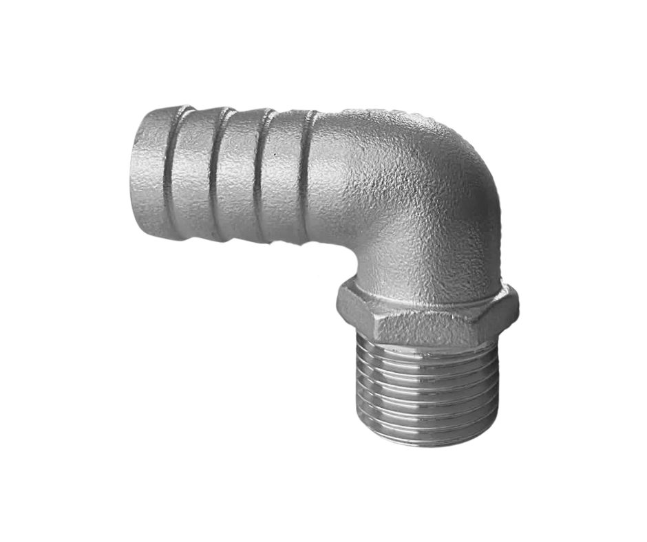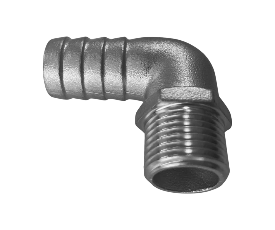 Slöngustútur Ryðfrír 90° 1/2″x20mm Male